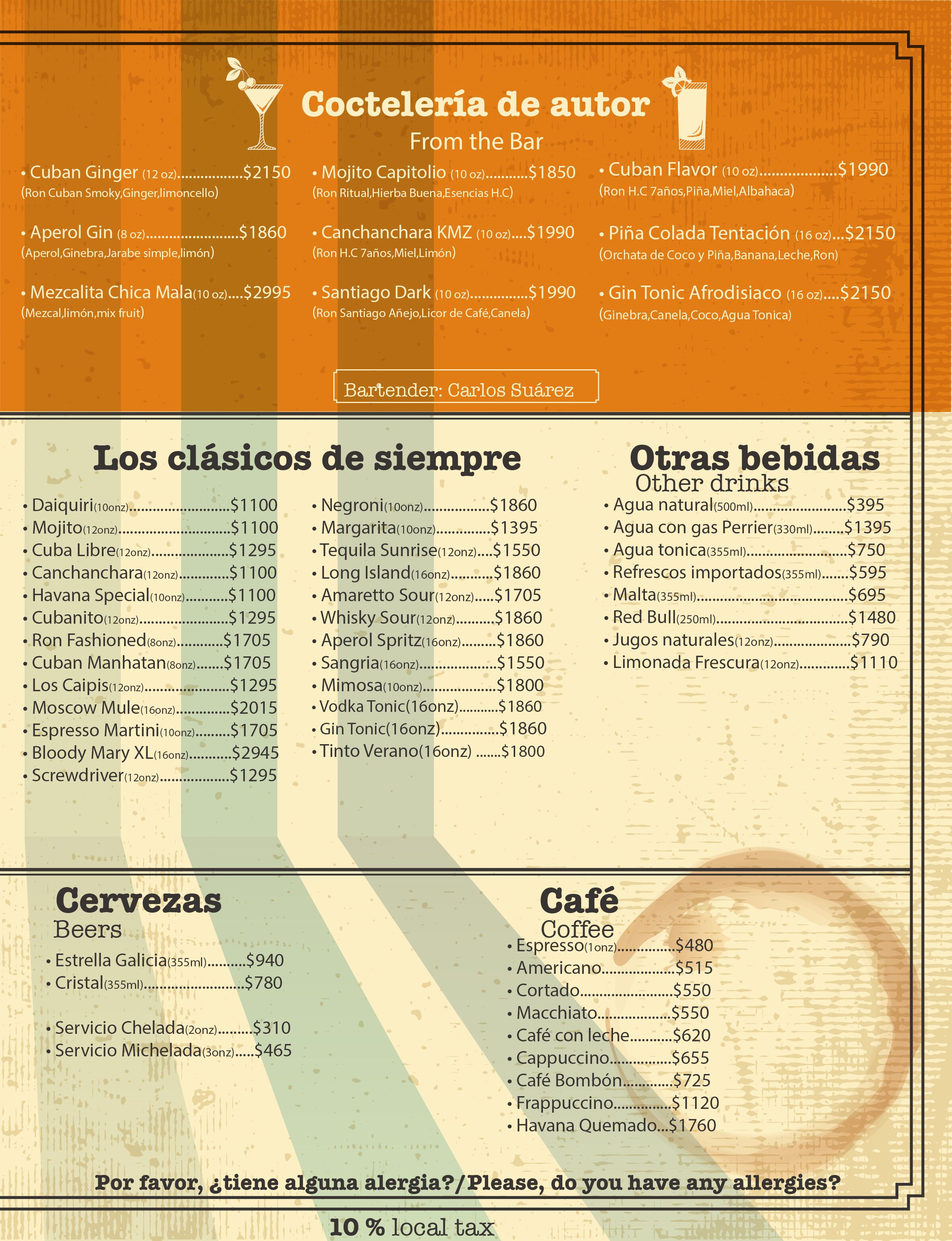 Ofrecemos una propuesta culinaria que combina platos llenos de sabor, tradición y un toque contemporáneo, acompañados de una cuidada selección de cocteles clásicos y de autor que realzan cada momento. Ya sea para un almuerzo relajado, una cena especial o simplemente disfrutar de un buen trago entre amigos, aquí encontrarás el ambiente perfecto para compartir y disfrutar.